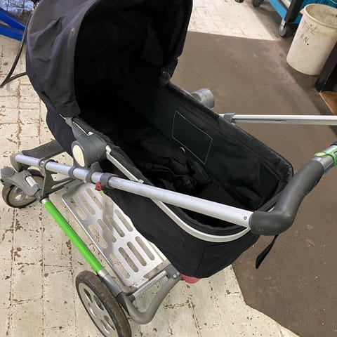 New. The sleeping wagon is brand new never used . It’s a perfect combination for travelling around and transport in car. The trolly frame needs some cleaning.