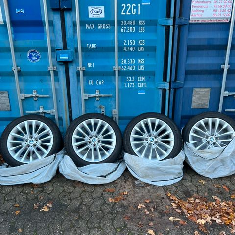 Originale BMW fælge 8x18 ET20, 245/50 R18, Pirelli Run Flat Vinterdæk med 6 mm. Mønster og fælgkantbeskytter.