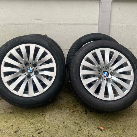 Nypris over 27.000, ingen skader på fælgene, brugt med dæk 8.000. Har siddet på en 740i E65, men den kører ikke længere om vinteren.