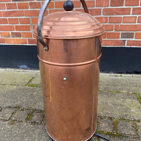 Gammel rød brandspand. Har stået ved Falck i Vejle, men er noget ældre end stationen der. Afhentes for 199,- i Vejle. Mål: 42 x 22 x 15 cm. Står flot men naturligvis med brugsspor. Med metalhank.