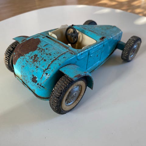 Perfekt til dig, der samler på vintage bliklegetøj eller søger et dekorativt stykke retro til værkstedet, mandehulen eller reolen.