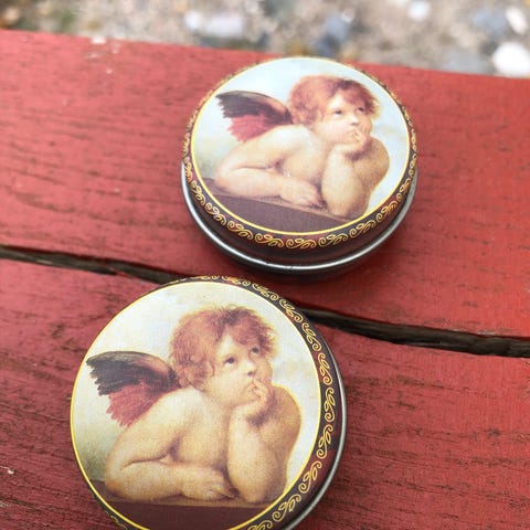 Fin oval lille æske med engle, Smuk lille oval æske med engle
