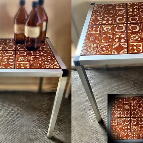 Lille, pænt, rektangulært, charmerende, men gammelt sofabord med kakler og underhylde sælges. Der er 15 kakler på bordpladen. Kaklerne er med blomstermotiver og fremstår pæne. Bordet er velholdt. Afhentes i Vejle.