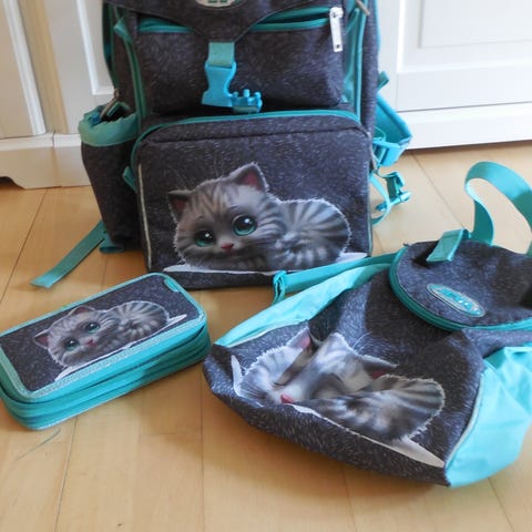Fin taske og penalhus. Dyre- og røgfrit hjem.