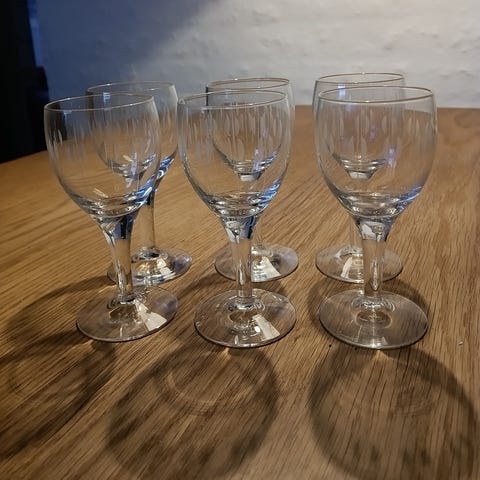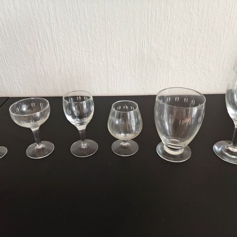 2 rødvin, 9 likørglas, 5 cognac, 1 port, 1 vandglas