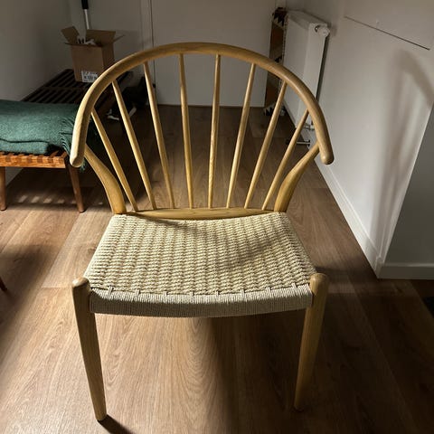 Horsnæs kurveflet loungestole med rundt sortbejdset egetræsbord