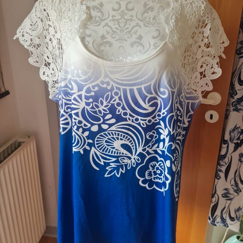Pæn og velholdt blå glimmer top fra Nanna XL i str. L.