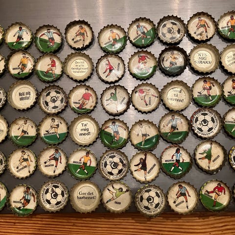 Kapsel af plastic der måler lidt over 36 cm i diameter. Den har hængt i hjemmebane i de sidste årtier og er derfor i en utrolig flot stand.