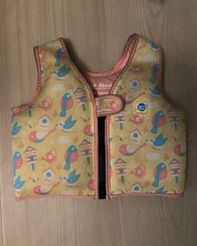 Splash About børne svømmevest i en lys gul farve. Vesten er designet til børn og inkluderer armringe for ekstra sikkerhed. Lavet af holdbart materiale, der sikrer komfort og bevægelsesfrihed. cirka 2-6 år.
