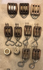 Træblokke b Blokke fra Ollerup i god stand 3 treskivede 6” den ene ubrugt, ...
