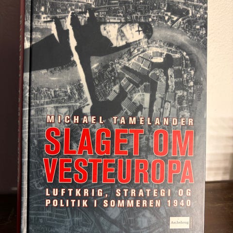 Michael Tamelander: "Slaget om Vesteuropa. Luftkrig, strategi og politik i sommeren 1940". 2. udg., 2004. 477 sider. Stort set som ny - bogryggen er bare lidt bleget af solen, og jeg har skrevet mit navn forrest i bogen.