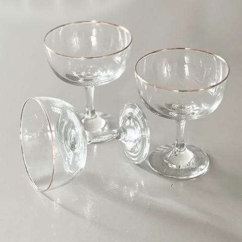 CHAMPANGE GLAS 5 stk , samlet pris , ca 22cm h dia 6cm, afhentes klippinge på stevns super flotte , guld kant en anelse slidt, , betaling i kontanter