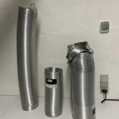 Aluplex-rør med rørskåle. 3 hele ruller, samt 2 stumper på ca. 10 m.