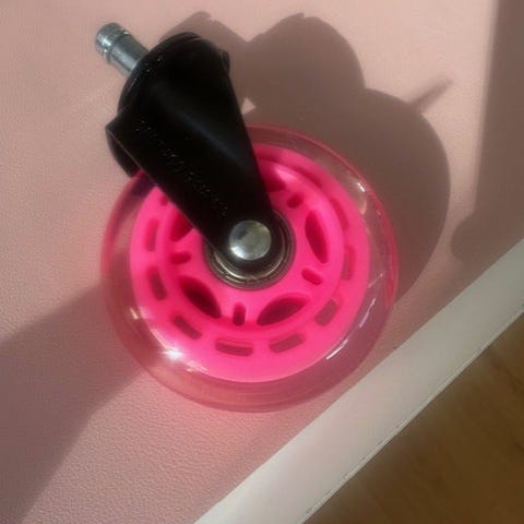PU-hjul (polyurethan), og er derfor gulvvenlig - så du undgå at lave mærker på trægulve mv.
