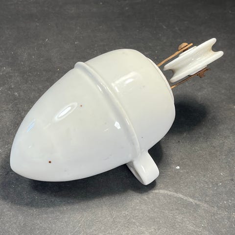 Petroleumslampe i hvid porcelæn og messing