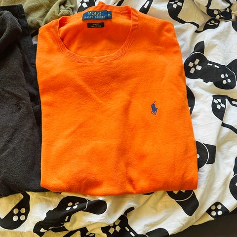 Ubrugt Rawlings herre / drenge t-shirt str. L. Hvid med røde 3/4 ærmer . God som gave, da den ikke har været brugt. 50% bomuld, 50% polyester. vaskes ved 40˚. Fin kvalitet. Købt hos Illum i 80’erne, men fik ikke brugt. Bredde 56cm, længde 70cm.