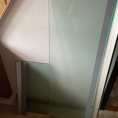 Glas, 105 cm bred x 38 cm dyb. Nypris 4600. SMS eller opkald på 27401908 foretrækkes.
