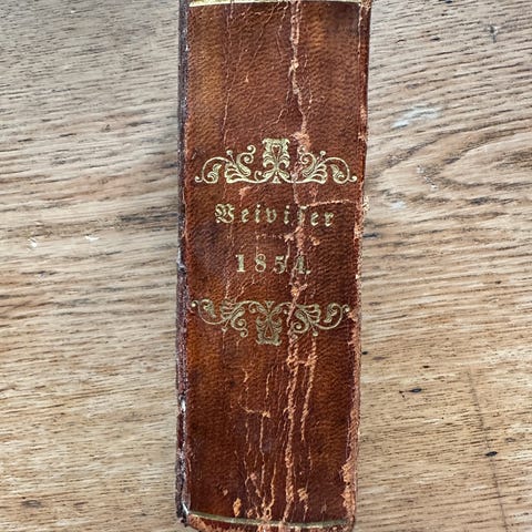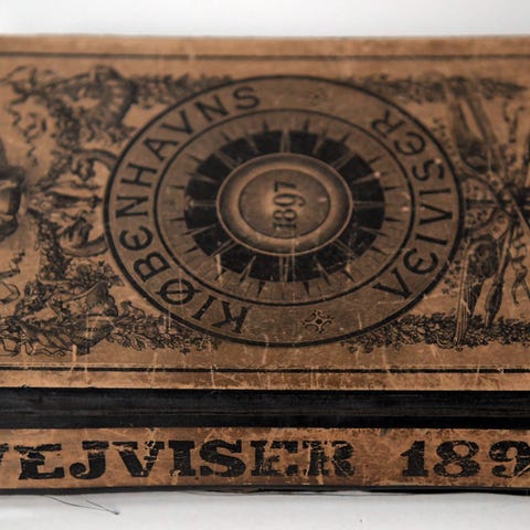 Veiviser eller Anviisning til Kjøbenhavns, Christianshavns og Forstædernes Beboere for Aaret 1829. Af: L. B. Thisen. Samtidigt halvlæderbind. Skade i øvre kapitæl. Omslagspapir på forcover delvist afrevet