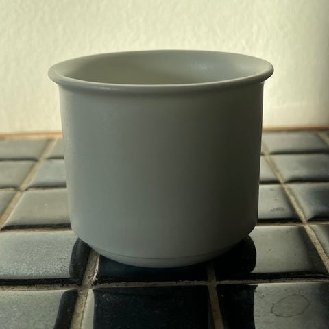 Største på billede 1. og på billede 2-3: ca 25 cm i diameter, 13 cm høj, med serverings holder i hvid; 175,-