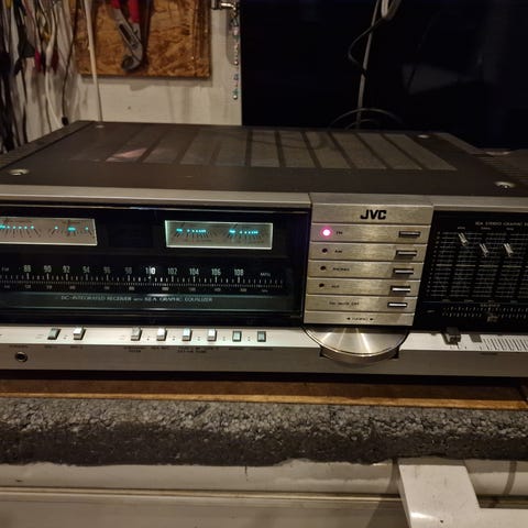 Har denne her rimelige fine jvc receiver til salg den spiller rigtigt godt det er en jeg har fået igennem en handel som defekt men jeg har skiftet pære samt lavet relæ og så har jeg renset div print og kontakter. Standen er rimelig men har da lidt brugs spor og så har den en del slid ved volumen hvor den mangler lidt streger se billeder men hvad lyden angår spiller den helt fantastisk