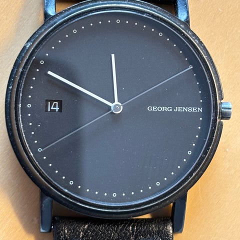 ARMBÅNDSUR, Georg Jensen, „Design 320", quartz, sort lakeret stål, armbånd i sort læder.