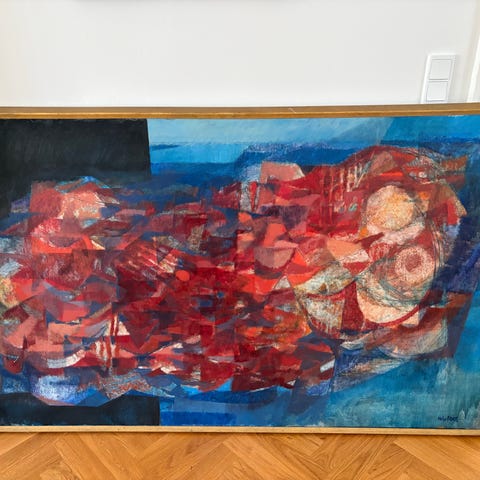 Oliemaleri, Gert Roger Larsen, motiv: Nøgenmotiv, b: 103 h: 98, Originalt oliemaleri på lærred i sort svæveramme af kunstneren Gert Roger Larsen