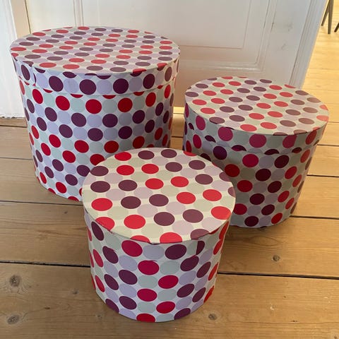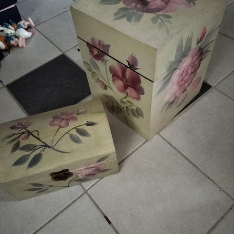 Fine kasser med fugle til pigeværelset. Den stor måler 19,5 x 19,5, den lille 15 x 15 cm