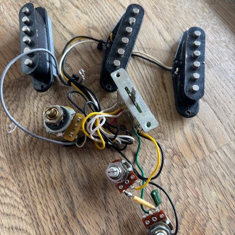 Aktiv pick guitar hvor alle oprindelige dele medfølger for montering.