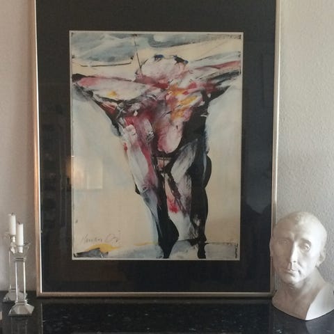 Maleriet er fra Galleri Krebsen, Studiestræde i København, hvor kunstneren udstillede for år tilbage.