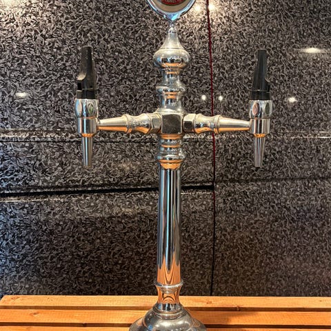 Arita kugleventiler i rustfrit stål, 6 stk. lille haner, 2 stk. større rustfrie kuglehaner, der har været brugt til Fadølsanlæg. Med fordeler rør til 5 haner.
