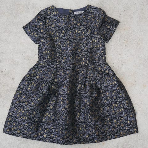Farven er sort med små "guldblomster".