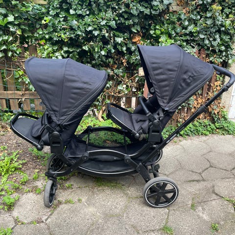 Denne søskendevogn kombinerer komfort og funktionalitet på bedste vis. Det ergonomiske håndtag sikrer et solidt og behageligt greb, mens den store, aftagelige kaleche beskytter effektivt mod både sol og vind. Den rummelige opbevaringskurv giver masser af plads til alt det nødvendige og gør hverdagens ture mere bekvemme.
