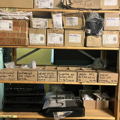 Der er både printkort, hydraliske komponter og dele til servicearbejdet.