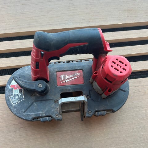 En helt ny og ubrugt minikædesav. Jeg købte den på lagersalg til at fælde et stort træ i haben, men får den ikke brugt. Den kører med milwaukee m12 batterier.