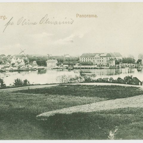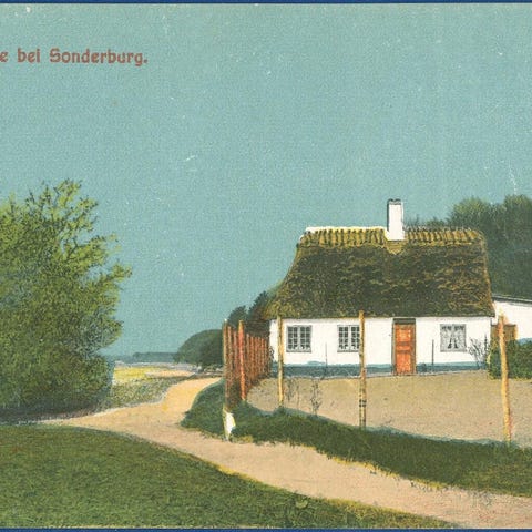Coloreret postkort stemplet 12.7.1903. Med Die Strandmoole (strandpromenaden) ved Alssund fra før genforeningen. Flot kort.