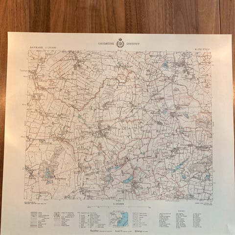 Vægkort fra 1949: Turebyholm og omegn (perfekt stand)