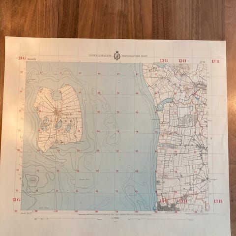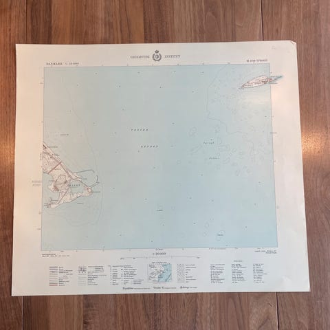 Vægkort fra 1951: Mandø (perfekt stand)