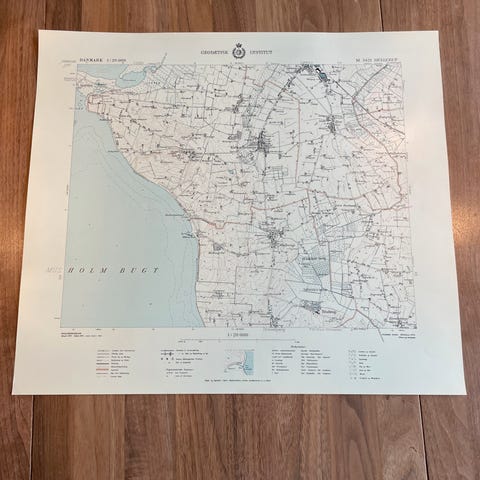 Vægkort fra 1951: Moltrup og omegn (perfekt stand)