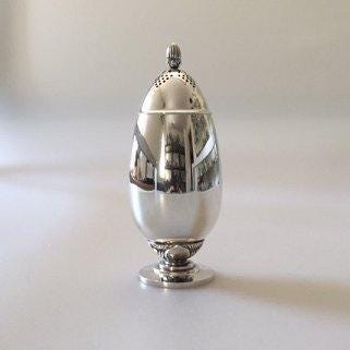 Georg Jensen Kaktus Sterling Sølv Saltkar No 30 med Grøn Emalje. Måler 1,5 cm H. Ca. 4,5 cm Ø. Vejer 33 gram. Designet af Gundolp Albertus. Gundolp Albertus arbejdede i Georg Jensens sølvsmedje i 40 år. Fra 1926 - 1954, var han assisterende direktør og overvågede virksomhedens produktion og kvalitetssikrede håndværket. Fra 1908 til 1911 studerede han sølvsmed i München og Paris. Da han kom til Danmark, arbejdede han ved Georg Jensen sølvsmedje og studerede også skulptur på Det Kongelige Danske Kunstakademi, hvorfra han dimitterede i 1915. Albertus blev Jensens svoger, da han blev gift med Jensens kone, Johannes, søster. Udover at føre tilsyn, designede han også smykker, bestik og korpus. I 1930 designede han det populære bestikmønster Cactus og i 1940 Bittersweet, i 1941 Mitra, som var det første rustfri bestikmønster. Han designede kopper, skåle, fade, bakker og cocktailshakere. Meget af hans korpus fra 1930’erne har meget slanke, morderne former med blomsterudsmykning. Han modtog en guldmedalje på verdensudstillingen i Paris i 1925 og et diplome d’honneur ved den internationale udstilling i 1937 i Paris.