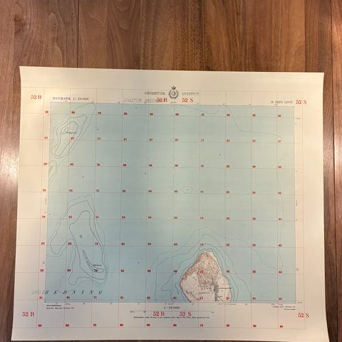 Vægkort fra 1957: Sprogø (perfekt stand)