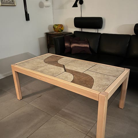 Rigtig fint og velholdt sofabordet med kakler og fine runde hjørner i lyst bøg. Sælges da vi desværre ikke har plads til det længere. Kun lidt brugt. Kommer fra et ikke ryger hjem.