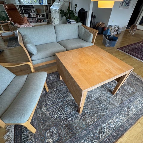 Lampebord/Sofabord i massiv ubehandlet bøgetræ med dyvler i teaktræ.