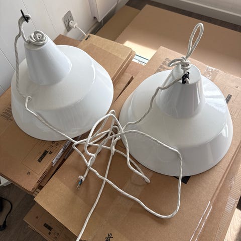 Med messinginddækning og acrylplastskærme. 24 cm. i diameter. Sælges som et sæt. Samlet pris.