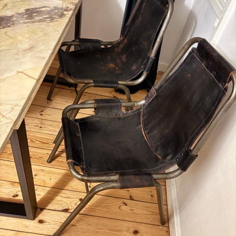 Stolene er i rigtig god stand alderen taget i betragtning og bærer kun lette brugsspor. De er et oplagt valg for den, der søger et unikt og stilfuldt møbel, der passer perfekt ind i både den moderne og den klassiske indretning.