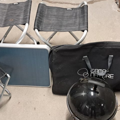 Vi sælger vores skønne camping‑sæt, som består af to behagelige stole og et let, funktionelt bord. Sættet har kun været med på én 10‑dages cykeltur, og fremstår i rigtig fin stand.