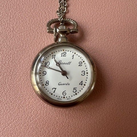 sølvfarve til kvinder. Uret har en klassisk urskive med tydelige tal og en elegant kæde. Velegnet til daglig brug eller som et stilfuldt tilbehør.