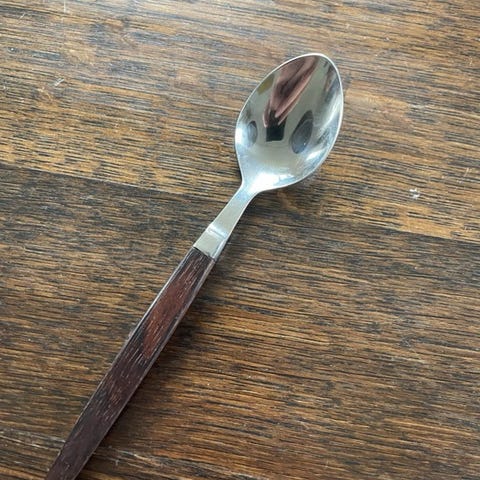 12 dele eton bestik med palisander skaft og rustfrit stål. Designet af Henning Nørgaard i 60'erne for Raadvad. Alle i fin stand.