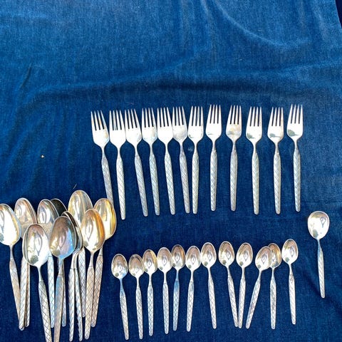 Harlekin sølvplet. Sættet inkluderer 12 Suppeskeer 20 cm. 12 Dessertskeer 18 cm. 12 Gafler 19,5 cm. 16 Teskeer 12 cm. En kagespade. En Kartoffelske. En Sovseske. og en Marmeladeske, alle designet med det karakteristiske Harlekin-mønster. Ideelt til både hverdag og særlige lejligheder. Sælges samlet