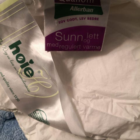 Høie of Scandinavia allergivenlig babydyne. Kan vaskes ved 60 grader og tørretumbles. Fremstår som ny.