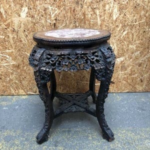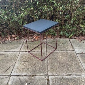 Mindre lampebord med hylde i marmor look,plader i fiberbeton,stel i egetræ.